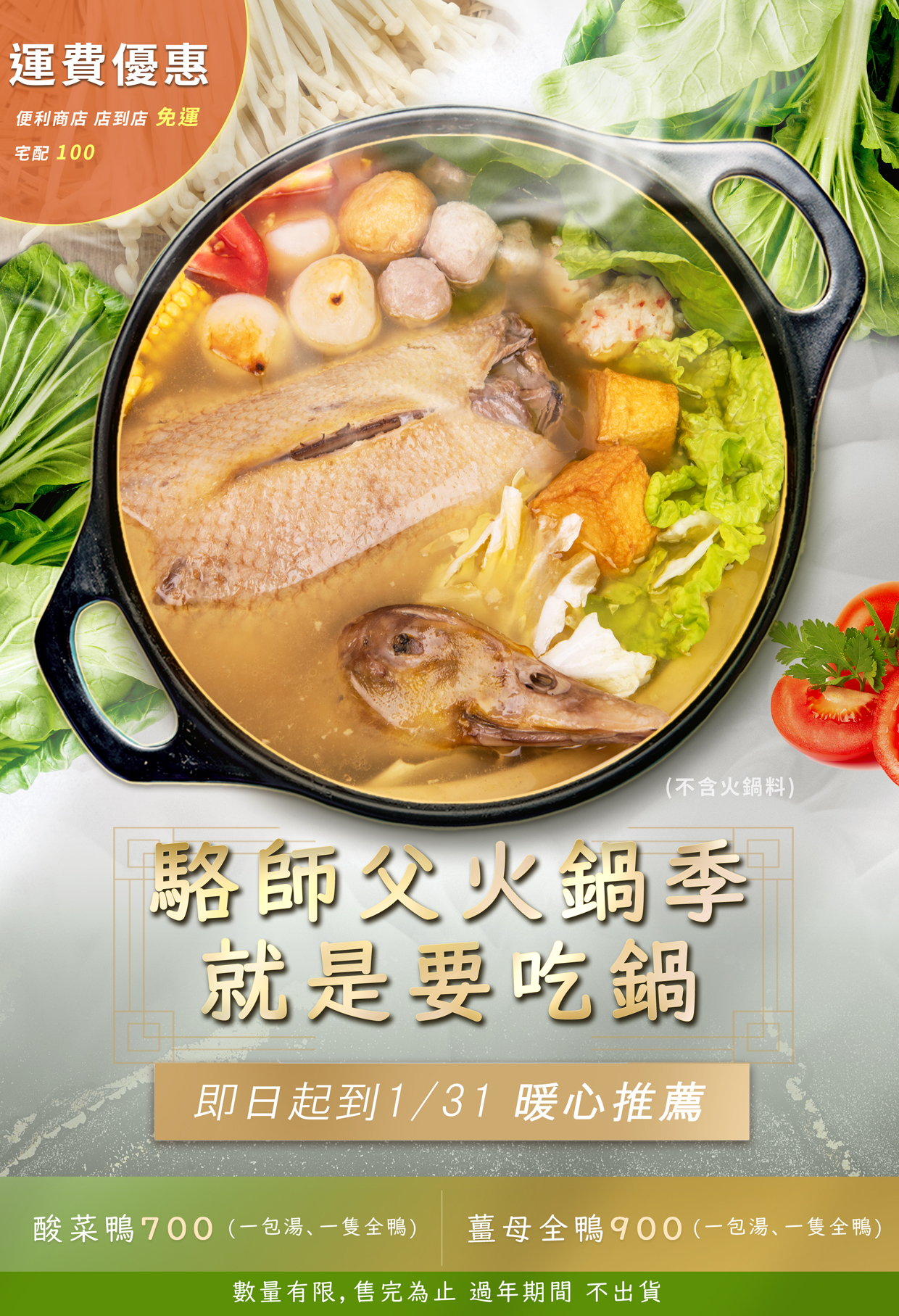 駱師父有感天氣漸漸變冷,新推出了新品酸菜鴨火鍋